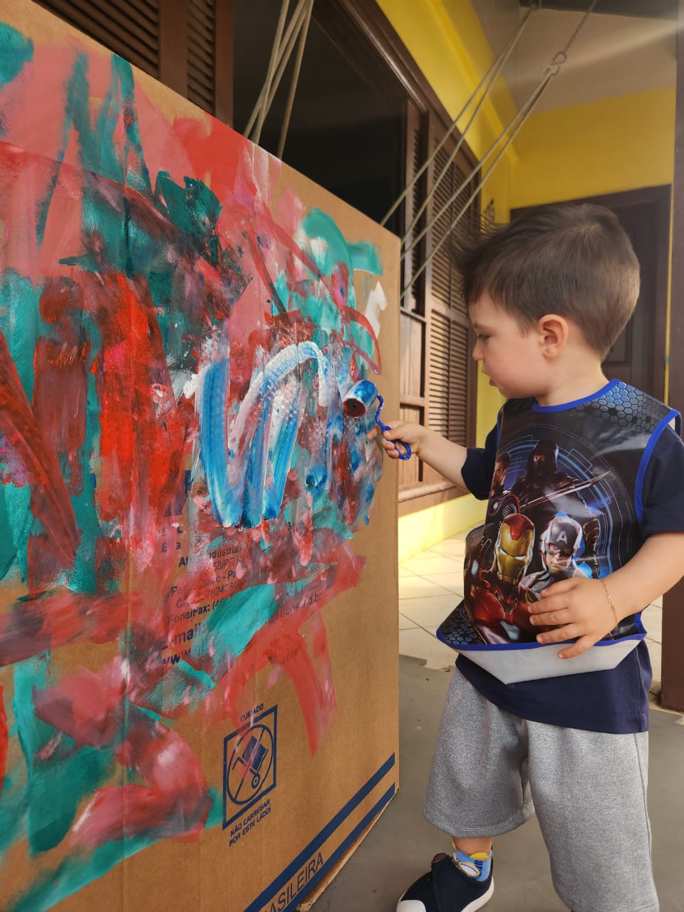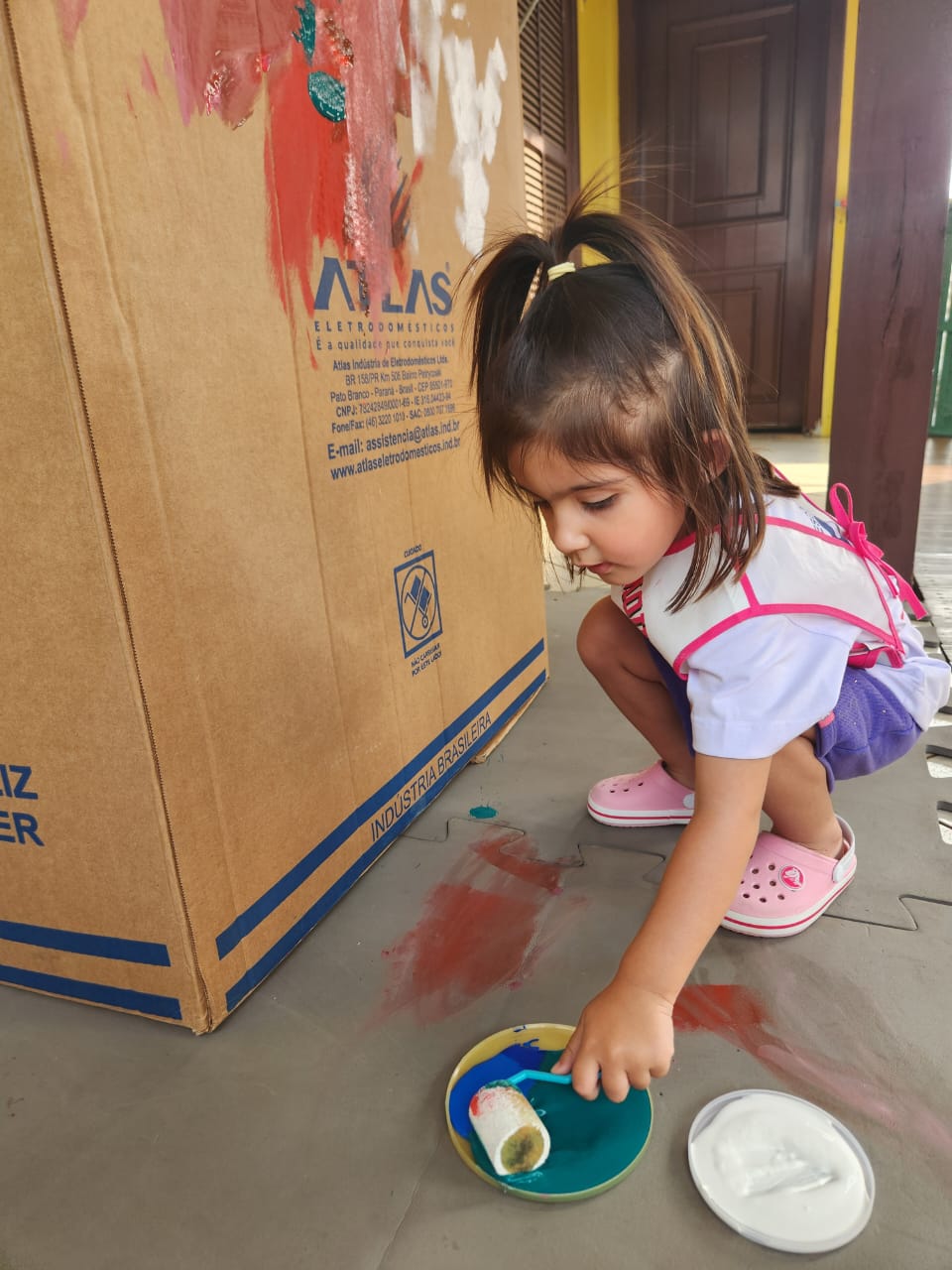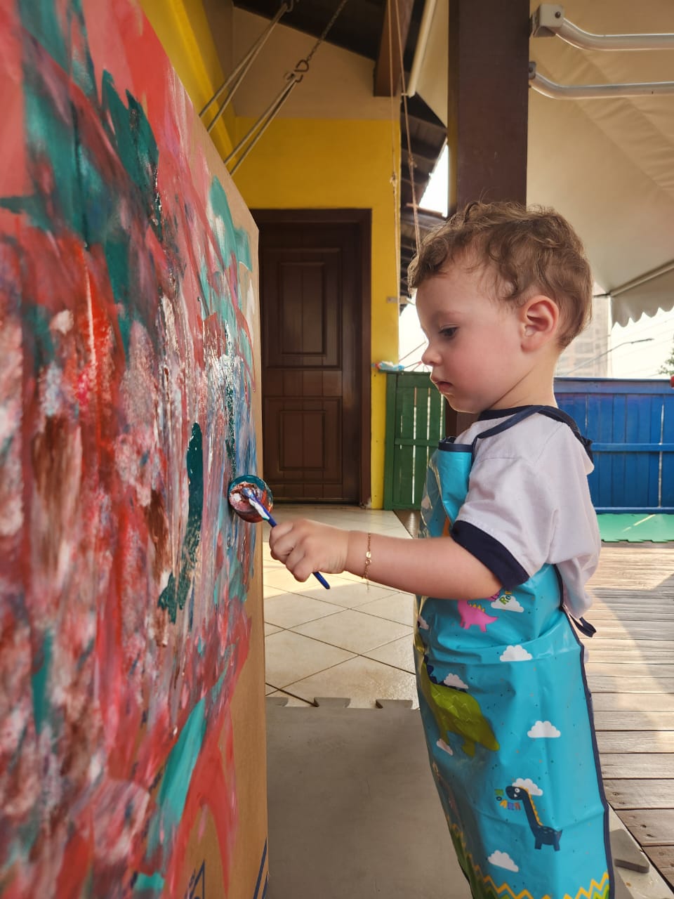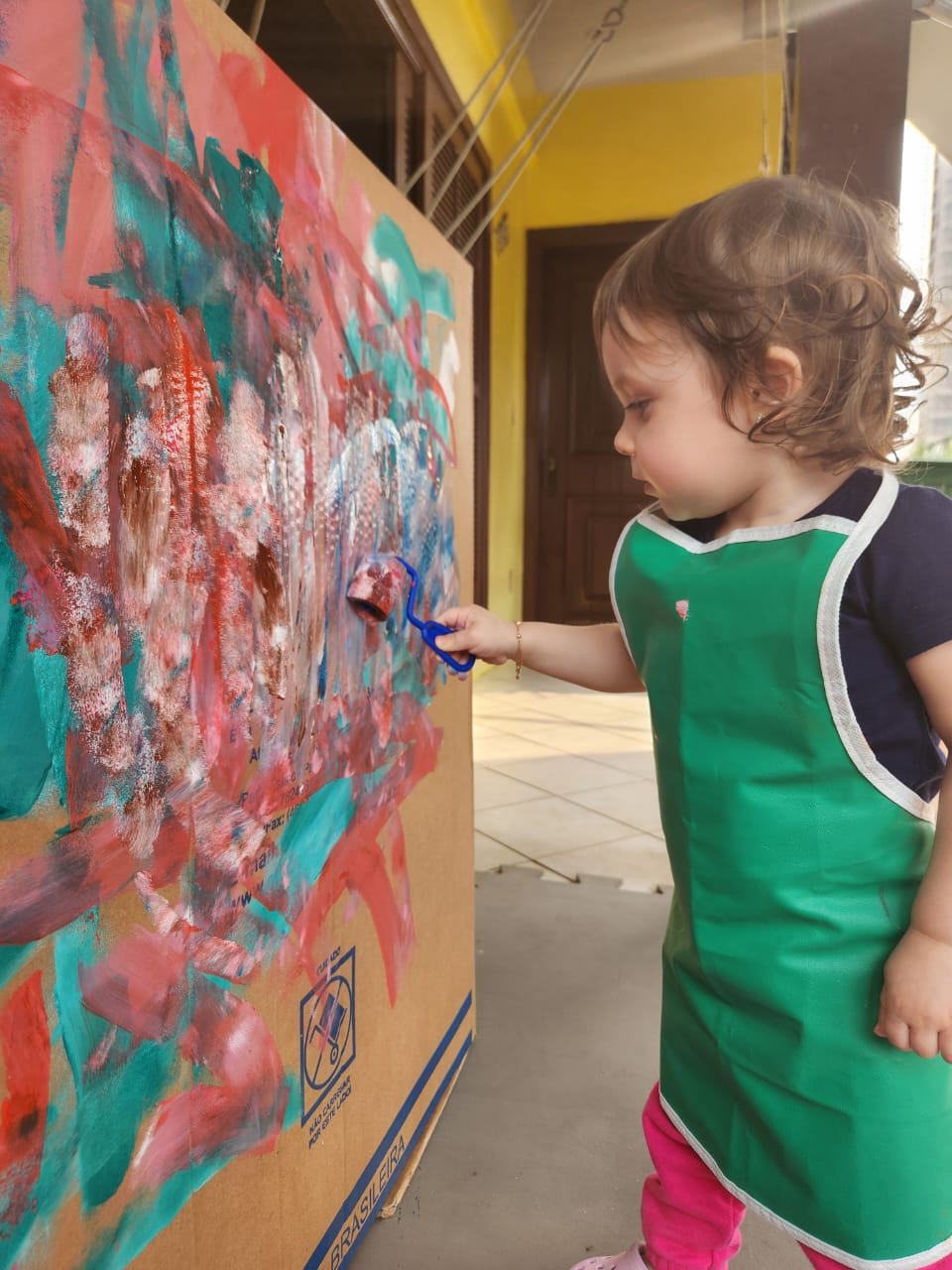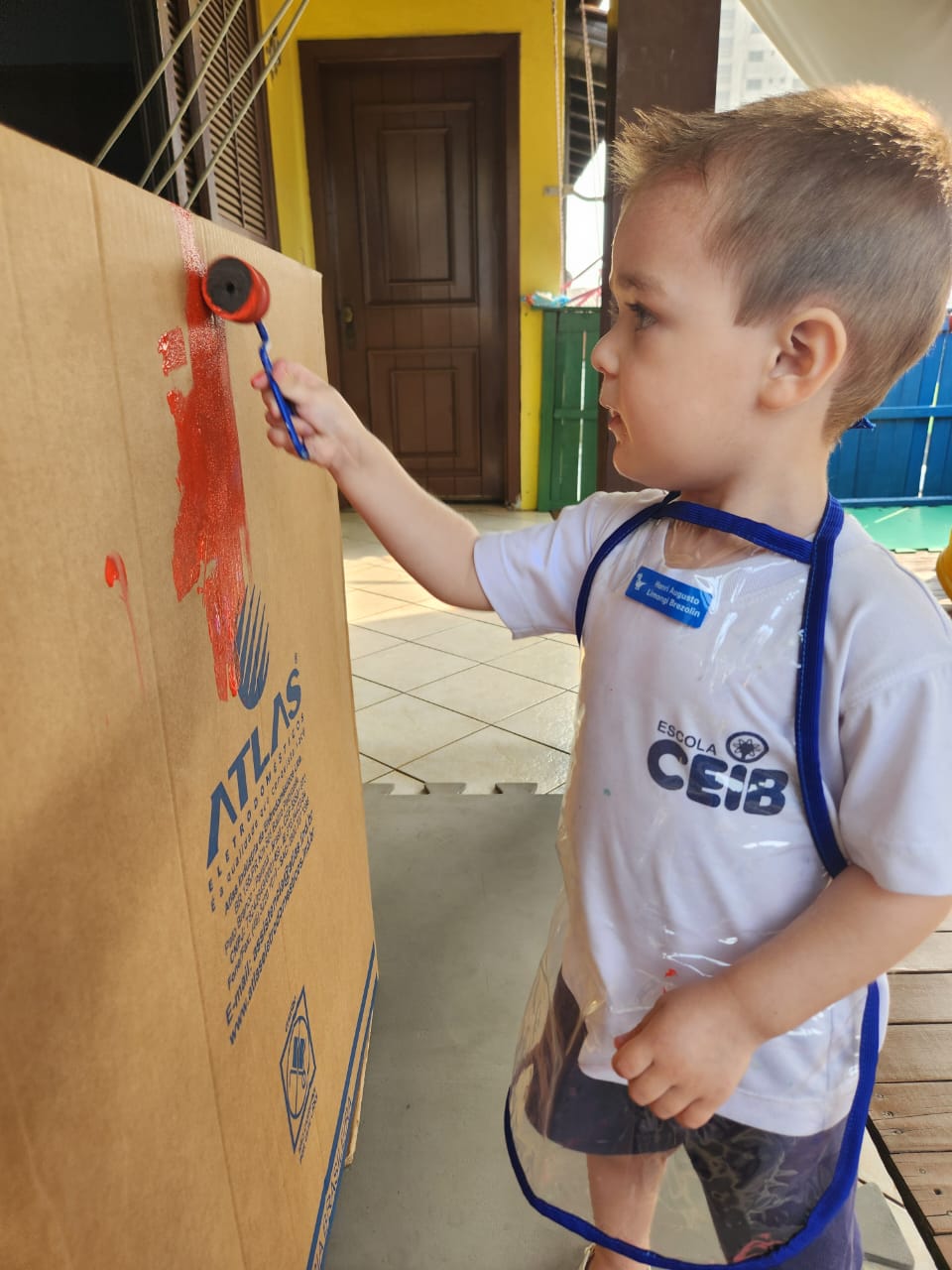 A atividade de pintura com tinta e rolos, estimula a coordenação motora fina, fundamental para o controle dos movimentos das mãos e dedos, habilidades essenciais para futuras tarefas como escrever e desenhar.