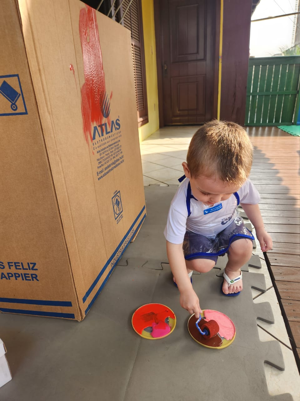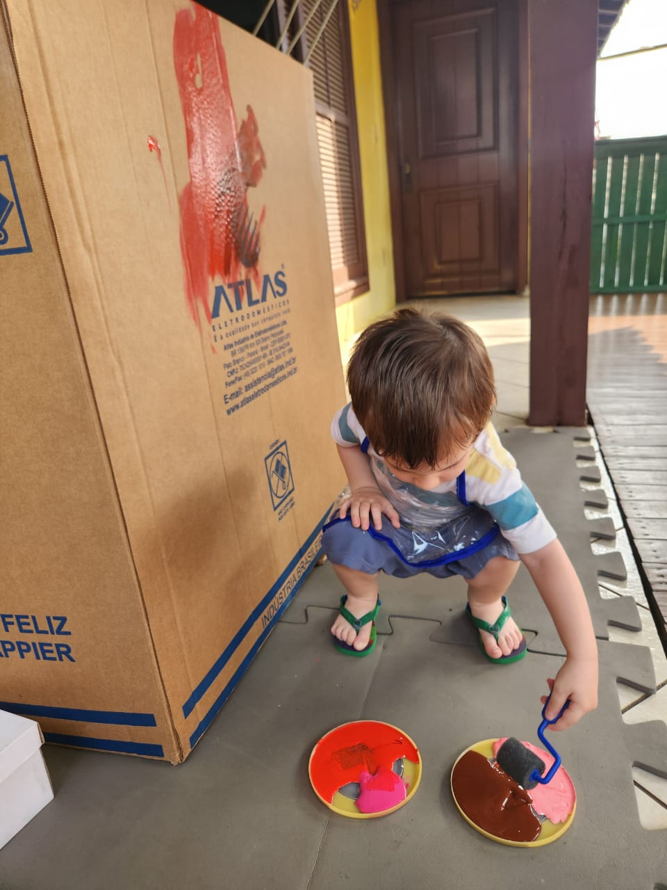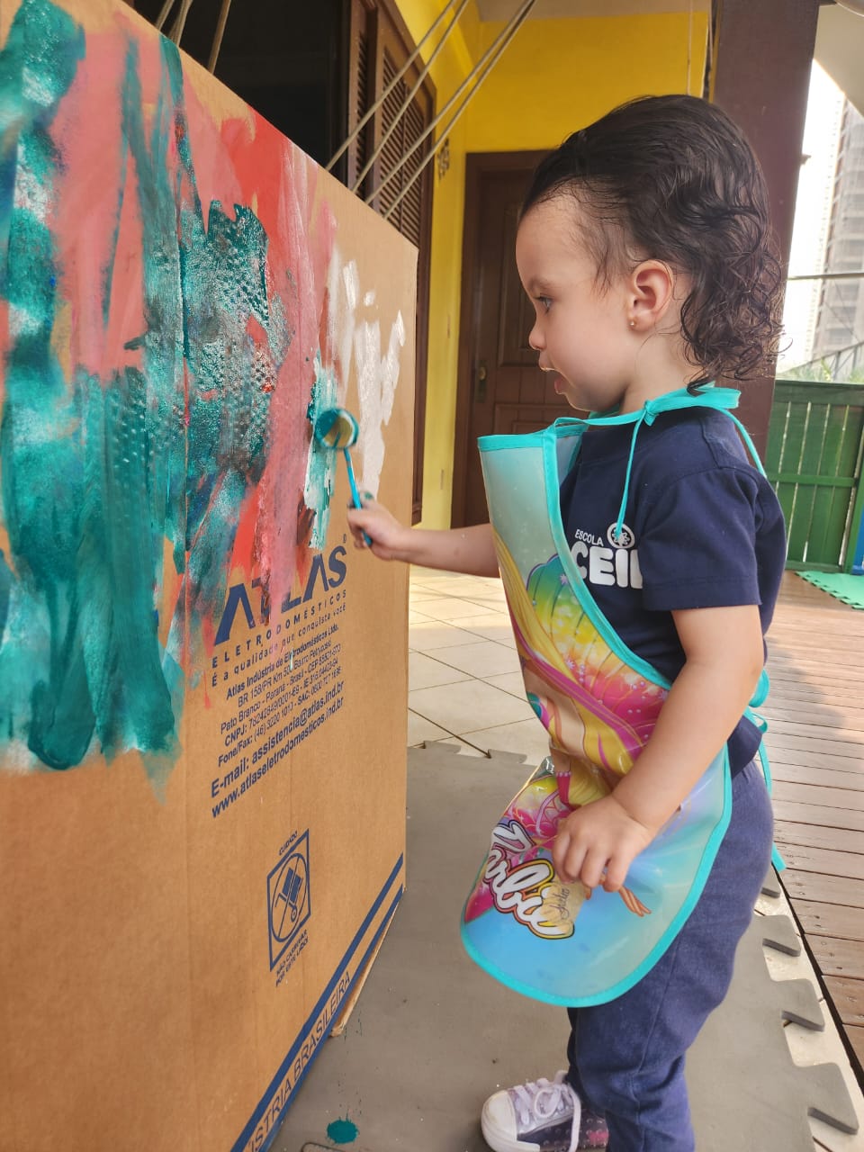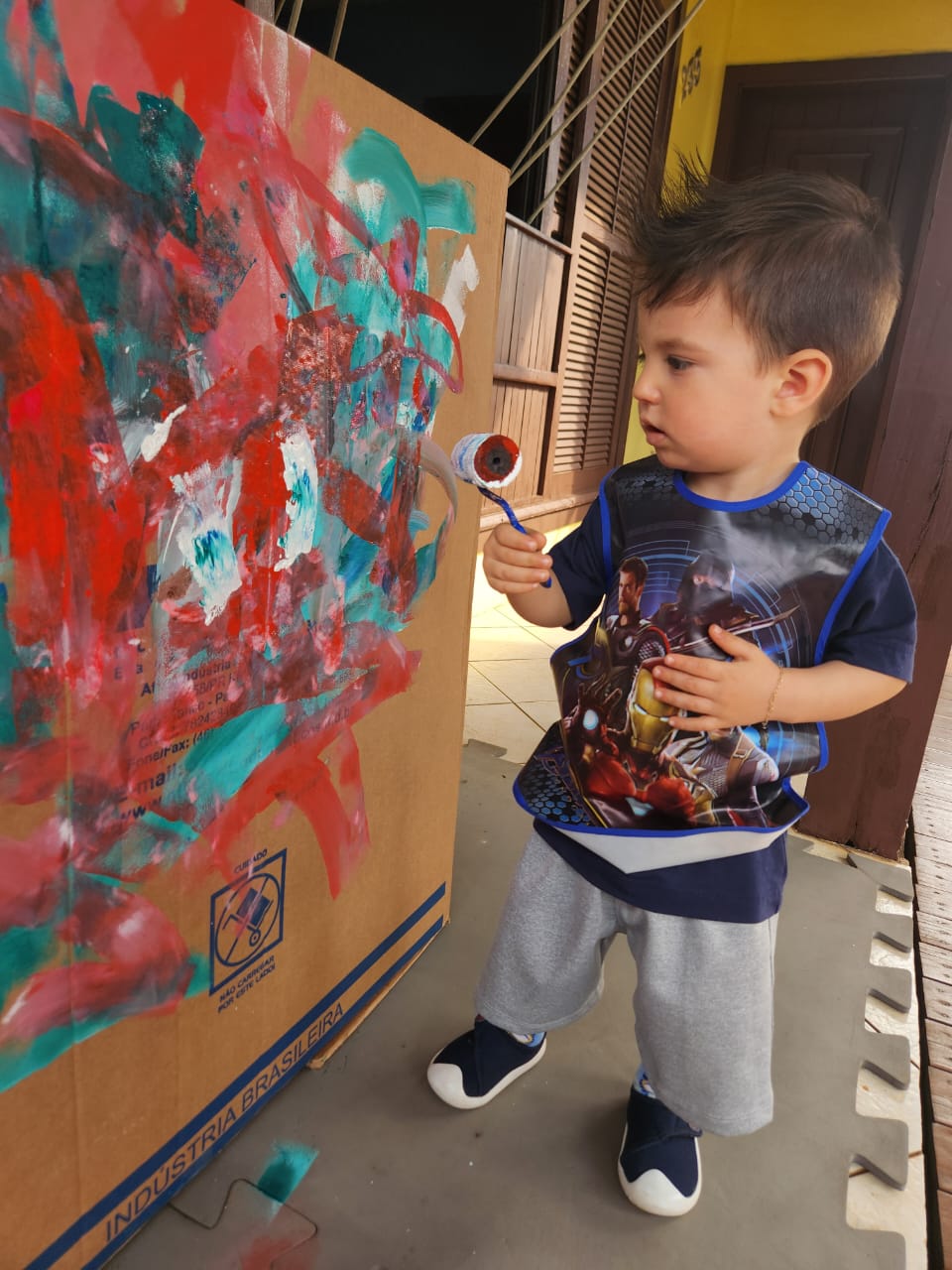 A atividade de pintura com tinta e rolos, estimula a coordenação motora fina, fundamental para o controle dos movimentos das mãos e dedos, habilidades essenciais para futuras tarefas como escrever e desenhar.