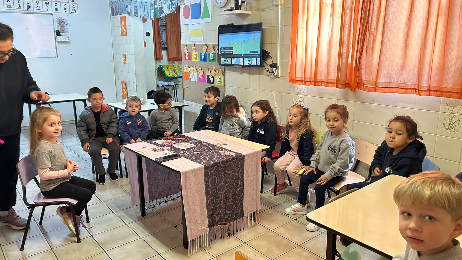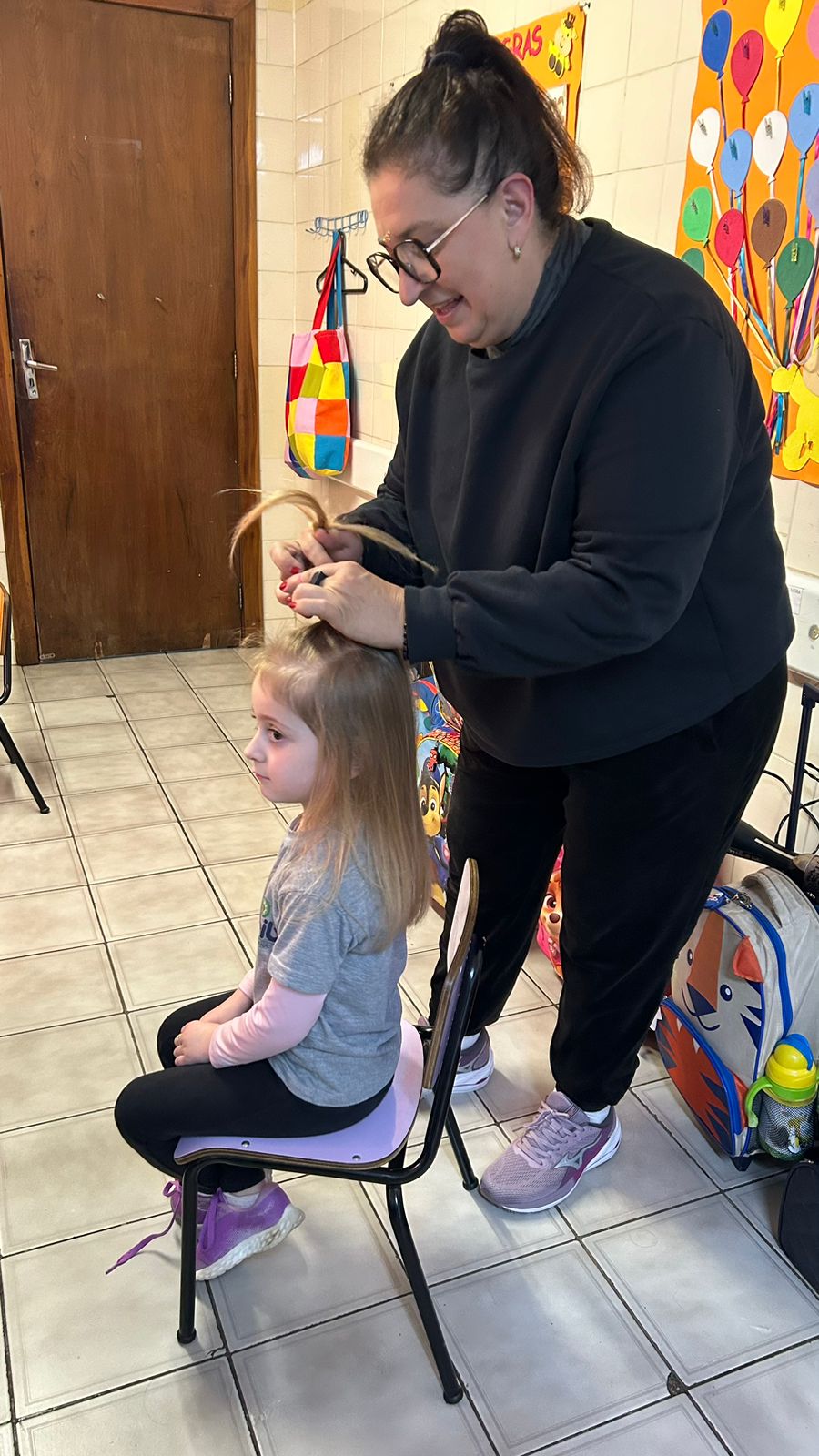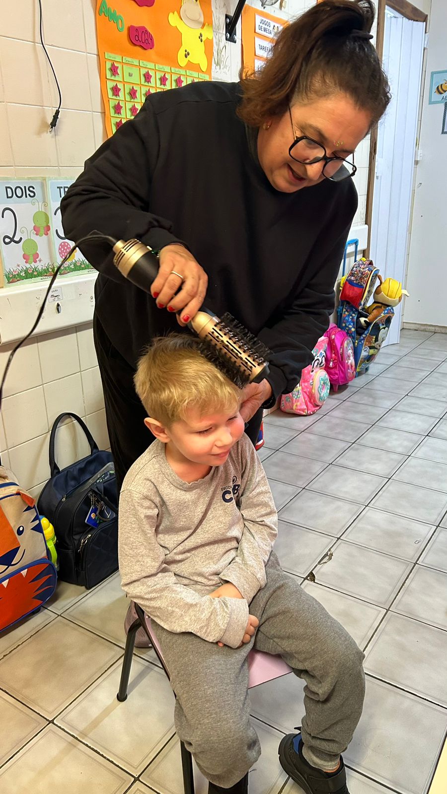 Com o objetivo de trabalhar a percepção das características físicas  de cada um (cor do cabelo, do olho, da pele, etc…), a turma do Infantil 3 brincou de salão de beleza. Cada criança pode fazer um penteado, assim envolvendo o lúdico em uma atividade de sala de aula.